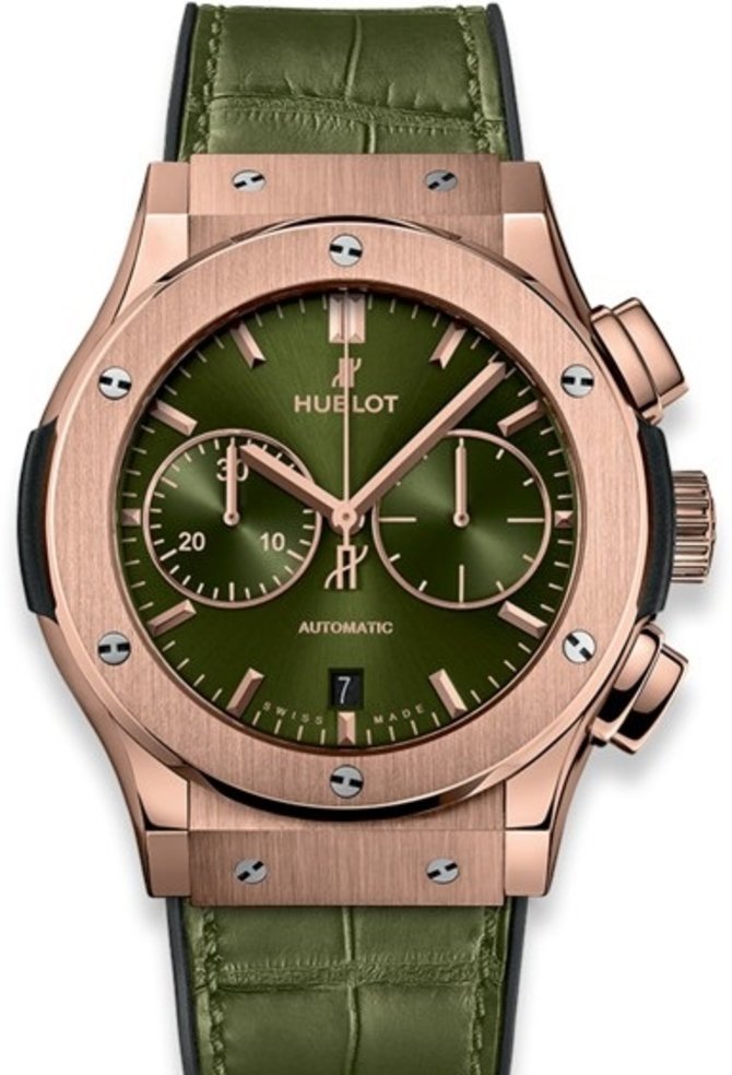 Часовая мануфактура из Швейцарии Hublot пополнила коллекцию Classic Fusion наручными часами Chronograph King Gold 521.OX.8980.LR, что были выпущены в круглом корпусе из розового золота, диаметром 45 мм. В таком размере установлен калибр HUB 1143 - разработка бренда Hublot, отличающаяся функцией хронографа, а также возможностью работать без подзавода на протяжении 42 часов. Ремень из кожи аллигатора с каучуковой подкладкой также дополнен и пряжкой из золота. На циферблате установлены накладные метки и стрелки из розового золота. Стекло из сапфирового кристалла предусмотрено для защиты циферблата от повреждений. Водонепроницаемость корпуса слегка повышена - 50 метров.