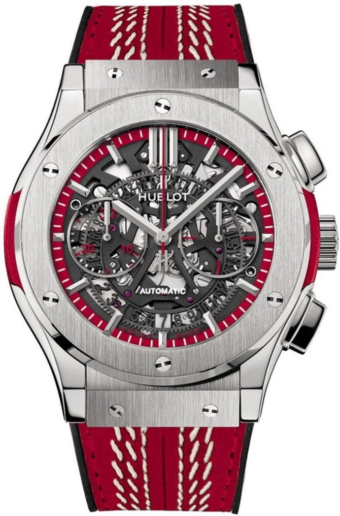 Мужские швейцарские часы Hublot Classic Fusion Chrono Cricket Titan вошли в коллекцию Classic Fusion компании Hublot. Цена на часы, рекомендуемая производителем (без учета скидок), составляет 16 500 €. Модель функционирует на автоматическом калибре HUB1155 с хронографом. 45-миллиметровый титановый корпус обладает 100-метровой герметичностью. На циферблате-скелетоне указываются часы, минуты, секунды и дата. Циферблат находится под надежной защитой прочного сапфирового стекла с антибликовым покрытием. Запас хода автоматического мануфактурного калибра - 42 часа. Ремешок с каучуковой подкладкой пошит из натуральной кожи. Застежка титановая. Ограниченная серия - 250 экземпляров.