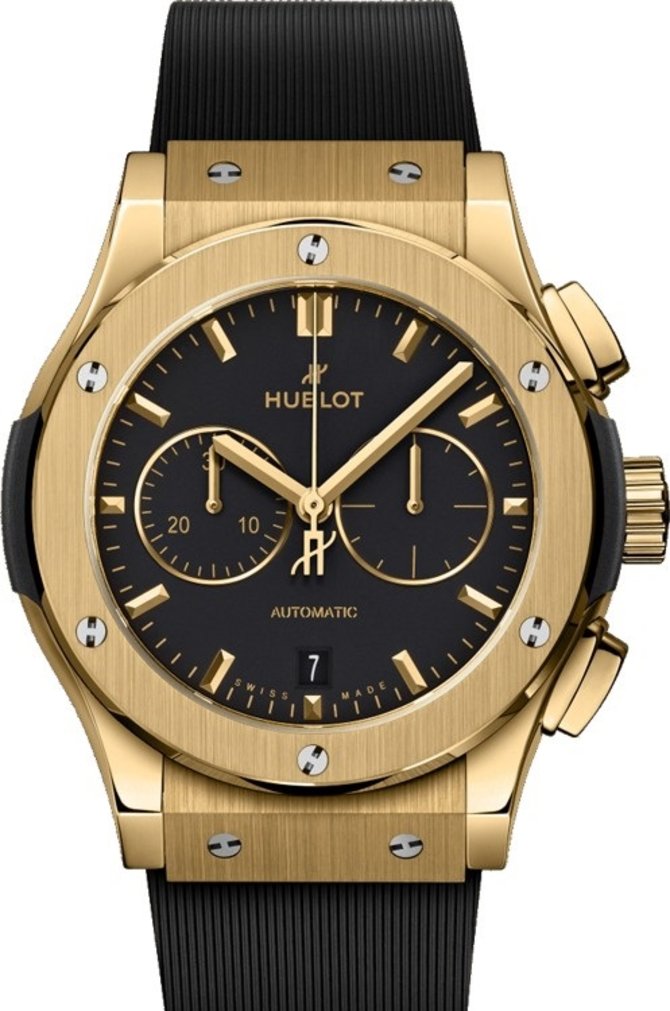 Швейцарская часовая мануфактура Hublot в 2022 году представила модель наручных часов Classic Fusion Chronograph 42 mm 541. VX. 1130. RX, диаметром 42 мм, что выполнен из желтого золота. Часы отличаются водонепроницаемостью до 50 метров. Внутри корпуса специалисты знаменитого бренда установили автоматический механизм HUB1153, обладающий запасом хода до 42 часов работы, а также отличающийся функцией хронографа. На сером циферблате, закрытом надежным стеклом из сапфирового кристалла, отображаются часы, минуты, секунды, дата, покакзания хронографа. Часы поставляются с ремешком из каучука и золотой застежкой классического типа.