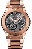Часы входящие в линейку Classic Fusion, не такие массивные как любые из Big Bang, но только этим часам присущи действительно новые черты ранее не встречавшиеся в часах HUBLOT, Новая модель Classic Fusion Ultra-Thin Skeleton, помимо того, что является скелетоном, еще и содержит ультратонкий механизм с ручным заводом высотой всего 2.9мм.