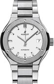 Наручные часы - это не просто прибор для измерения времени в пределах суток, а это еще и способ самовыражения. Самовыражаться с помощью аксессуара в виде швейцарских часов Hublot Classic Fusion в корпусе из титана очень даже приятно. В 42-миллиметровом корпусе расположен мануфактурный автоматический калибр HUB1112, служащий для индикации на черном циферблате под сапфировым стеклом данных часов, минут, секунд и даты. Часовые метки и стрелки выполнены из титана. Заводная головка тоже титановая. Винты, фиксирующие безель, из титана. Механизм отличается запасом хода в 42 часа. Браслет титановый. Застежка раскладная. Водостойкость корпуса - 50 метров.