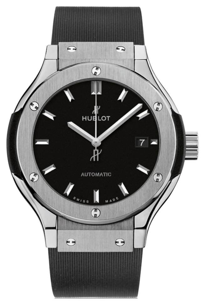 Женская модель, выполненная в стиле классических мужских часов, представлена в круглом 33-миллиметровом титановом корпусе. Часы идеально впишутся в образ деловой женщины и станут ее незаменимым аксессуаром. Модель Hublot Classic Fusion Automatic Date Titanium 33 mm 582.NX.1171.RX функционирует на автоматическом калибре HUB1112. Этот калибр отвечает за индикацию часов, минут, секунд и даты. Запас хода механизма - 42 часа. Черный ремешок изготовлен из каучука. Герметичность корпуса модели - 50 метров. Стекло сапфировое с антибликовым покрытием защищает циферблат от повреждений. Безель и ремешок закреплены н-образными винтами - фирменными винтами Hublot. Сапфировое стекло защитит циферблат от повреждений. Часовые метки, стрелки, логотип и надпись Hublot - выполнены из титана. Заводная головка рифленая.