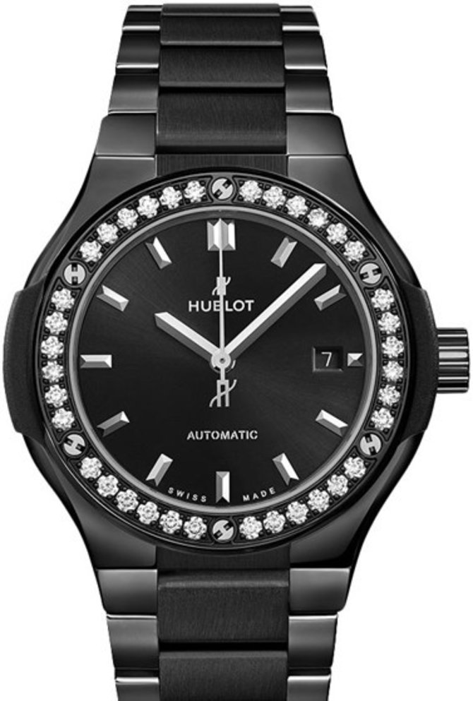 Часовой бренд Hublot представляет швейцарские часы Classic Fusion Automatic 33 mm 585.CM.1470.CM.1204 , что пополнили коллекцию Classic Fusion. Корпус из черной керамики выполнен в диаметре 33 мм. На черном сатинированном циферблате показываются часы, минуты, секунды, дата. Механизм с автоматическим подзаводом HUB1120 оснащен запасом хода на 40 часов. Механизм был разработан часовщиками мануфактуры Hublot. Браслет из керамики укомплектован раскладной застежкой. Установленный на циферблате стрелки и часовая разметка сделаны из титана. Циферблат защищен высокопрочным сапфировым противобликовым стеклом. Зафиксированный титановыми Н-образными винтами безель украшен бриллиантами.