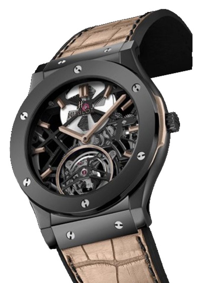 Представленная модель швейцарских наручных часов с турбийоном выпущена компанией Hublot в честь известного бразильского теннисиста Густаво Куэртена (Guga Kuerten). Густаво стал лицом бренда Hublot в 2013 году, присоединившись к таким мировым спортивным знаменитостям, как Усэйн Болт, Пеле, Дуэйн Уэйд и Кобе Брайант. Часы функционируют на швейцарском мануфактурном калибре HUB6010 с функцией турбийона, который работает от ручного подзавода. Он состоит из 155 элементов, где 19 - драгоценные камни. Балансовая частота механизма - 3 Гц (21,600 пк/час); 120-часовой запас хода. Корпус с двух сторон закрыт сапфировым стеклом с внутренним и внешним антибликовым покрытием соответственно. На задней крышке оставлен автограф теннисиста. Герметичность корпуса - 30 метров. Ушки корпуса, часовые метки и стрелки вскрыты лаком. Застежка из нержавеющей стали, раскладывающаяся.