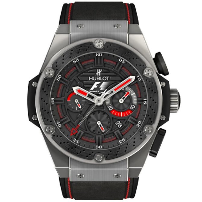 Очередная великолепная модель мужских наручных часов из серии King Power F1 703.ZM.1123.NR.FMO10 от часовых мастеров производителя Hublot не оставит к себе никого равнодушным, потому как завораживает своим внешним видом и функциональностью. Наличие хронографа как раз таки подчеркивает функционал данной модели. Круглый комбинированный корпус выполнен из керамики и циркония, и имеет такие размеры: 48 мм в диаметре. Автоматический механизм данной модели оснащен калибром HUB 4100, и имеет запас хода на 42 часа. Прочные сапфировые стекла, устойчивые к царапинам и другим повреждениям закрывают корпус с обеих сторон. На черно-красном циферблате шикарно смотрятся отлитые вручную посеребренные стрелки. Водонепроницаемость данной модели повышена и составляет 100 метров. Ремешок черный, каучуковый, оснащен титановой вставкой а также откидной застежкой. Серия данной модели ограничена всего лишь в 500 экземпляров.