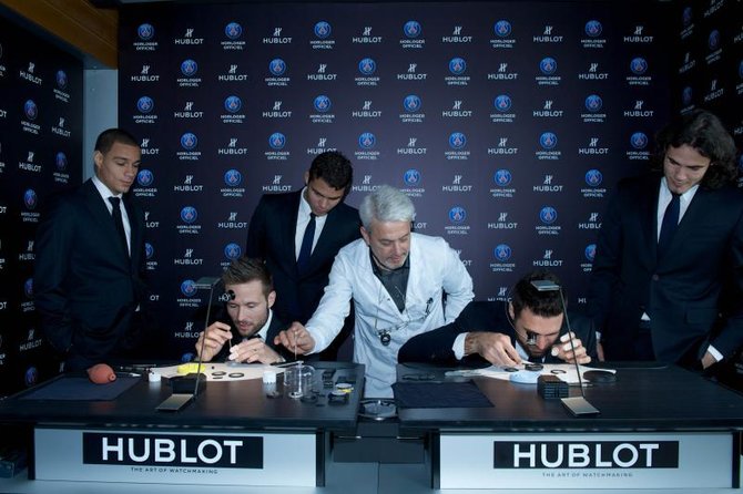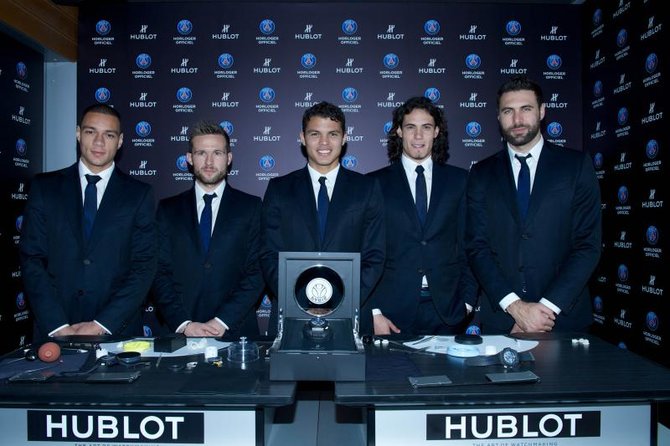 Новая Лимитированная модель 200 экземпляров от компании Hublot посвящена французскому футбольному клубу PARIS SAINT-GERMAIN. Новинка с одноименным названием Hublot King Power Paris Saint-Germain теперь является официальным хронометристом парижского клуба. Игроки клуба: Edinson Cavani, Thiago Silva, Yohan Cabaye, Gregory Van Der Wiel и Salvatore Sirigu были приглашены в мастерскую часовой академии Hublot, для того чтобы принять участие в сборке часов вместе с профессиональным часовщиком. Часы выполнены в цветовой гамме футбольного клуба. В комплекте с часами будет идти футболка клуба PARIS SAINT-GERMAIN с подписью всех игроков.