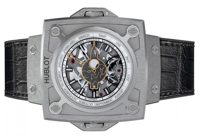 Великолепная модель мужских наручных часов из серии Masterpiece от часовых мастеров производителя Hublot не оставит к себе никого равнодушным, потому как завораживает своим видом в форме квадрата и функциональностью. Наличие турбийона, скелетона а так же астрономических часов, Турбийон как раз таки подчеркивает функционал данной модели. Квадратный корпус выполнен из титана. Автоматический механизм данной модели оснащен калибром Antikythera, и имеет запас хода на 120 часов. Прочные сапфировые стекла, устойчивые к царапинам и другим повреждениям закрывают корпус с обеих сторон. На серебристом циферблате шикарно смотрятся отлитые вручную позолоченые стрелки. Водонепроницаемость данной модели составляет 30 метров. Ремешок черный, каучуковый и кожа аллигатора, оснащен титановой вставкой. Серия данной модели ограничена всего лишь в 20 экземпляров.