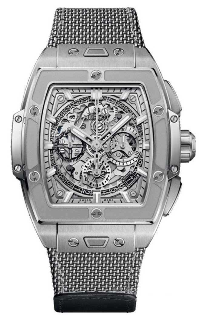 Часовая марка Hublot представляет мануфактурные швейцарские часы Spirit of Big Bang Chronograph 42 mm 642.NX.0110.NR.HEC23 в корпусе из титана, размером 48 мм, что обладает 100-метровой водонепроницаемостью. Часы функционируют на базе автоматического механизма HUB4700 с запасом хода на 50 часов и хронографом. На скелетонизированном циферблате отображаются данные текущего времени и показания хронографа. Часы поставляются в комплекте с титановым браслетом. Циферблат с часовыми метками и стрелками, покрытыми люминесцентным составом, защищен стеклом из сапфирового кристалла. Часы выпущены в 2023 году.
