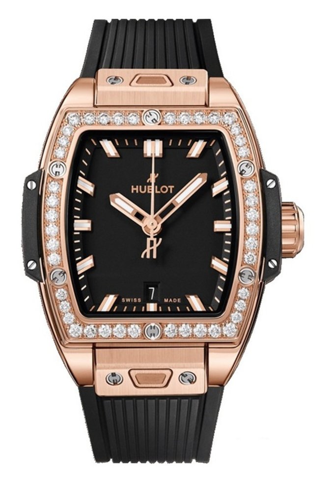 Женские наручные швейцарские часы от знаменитой компании Hublot, модель Spirit of Big Bang Automatic 32 mm 682.OX.1180.RX.1204, представлены в корпусе бочкообразной формы, размером 32 мм, из розового золота со 100-метровой водонепроницаемостью. Часы оснащены автоматическим механизмом HUB1120, что был создан инженерами бренда Hublot на собственной мануфактуре марки. Он обладает запасом хода на 40 часов работы. На черном циферблате, защищенном стеклом из сапфира с противобликовым покрытием, показываются часы, минуты, секунды, дата. Задняя крышка также выполнена из сапфирового стекла, что открывает вид на работу механизма. Каучуковый ремень со стальной застежкой - в комплекте. Люминесцентным составом, отображающимся в темноте, покрыты стрелки и часовые метки. Безель инкрустирован белыми бриллиантами. Часы выпущены в 2023 году.