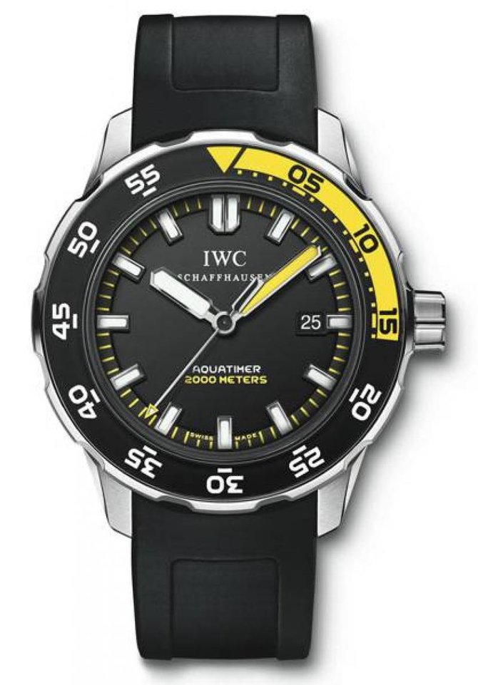 Рассматривая мужские наручные часы IWC Automatic 2000 коллекции Aquatimer. Часы без излишеств и в корпусе 44 мм, сразу же бросается в глаза их стильное оформление, оригинальный стальной корпус. Данная модель рекомендуется особым ценителям часов из нержавеющей стали фирмы IWC. Часы имеют браслет из каучука с вставкой из нержавеющей стали и гармонично смотрящийся черный циферблат со стрелками белого и желтого цвета в особом фирменном стиле данного модельного ряда. Также на циферблате нет чисел, обозначающих время, что придает им особую изысканность. Разработаны для подводного использования требовательных дайверов. Часы имеют водонепроницаемый корпус с максимальной глубиной погружения в 2000 метров, а также имеют вращающийся безель. В них установлен механизм с автоподзаводом, калибра 30110. Часы имеют запас хода 40 часов. Из функций у данной модели присутствует показ часов, минут, секунд и даты.