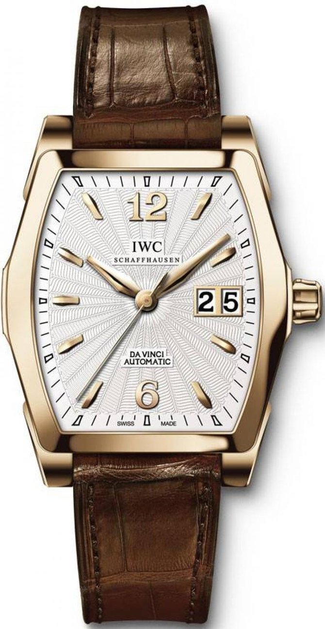 Рассматриваем часы фирмы IWC коллекции Da Vinci модель Automatic ref 452311. Часы имеют корпус из розовое золото 18-к , а также ремешок выполненный из кожи аллигатора коричневого цвета с классической застежкой. Циферблат гельошированный и имеет серебристый цвет. Форма корпуса этих часов довольно оригинальная и стильная. Стекло в этой модели установлено сапфировое. Размер часов 35.6 х 42.5 мм, а их толщина равняется 10.9 мм. Часы водонепроницаемые и даже до 30 метров. В часах есть увеличенная дата и их запас хода достигает 42 часа.