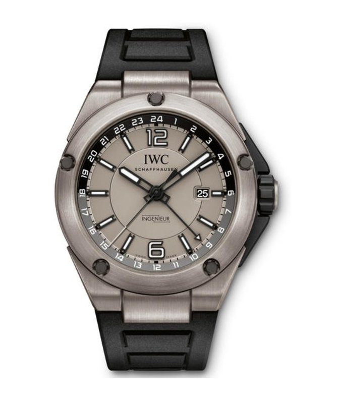 Эргономичные швейцарские часы IWC Dual Time, расширившие коллекцию мануфактуры IWC - "INGENIEUR", выпущены в крупном титановом корпусе, диаметром 45 мм, со 120-метровой герметичностью. Это значит, что корпус способен выдержать давление воды до 12 бар. Механизм, установленный в этом часовом экземпляре, полностью мануфактурный; функционирует от автоподзавода. Каучуковый ремешок с классической титановой пряжкой, а также безель, зафиксированный броскими винтами, придадут данным часам определенного спортивного духа. Циферблат под прочным сапфировым стеклом укажет владельцу IWC Dual Time: часы, минуты, секунды, дату и время второго часового пояса. Толщина матово-полированного корпуса - 13 мм. В темноте отличную читабельность данных гарантирует люминесцентное покрытие Super-LumiNova.