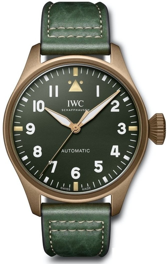 Легендарная швейцарская часовая марка IWC представляет модель наручных спортивных часов в круглом корпусе из бронзы на базе автоматического механизма с запасом хода на 60 часов работы IWC 82100. На защищенном сапфировым стеклом циферблате показываются данные текущего времени. Часы комплектуются ремешком из натуральной кожи зеленого цвета. Водонепроницаемость корпуса 100 метров.