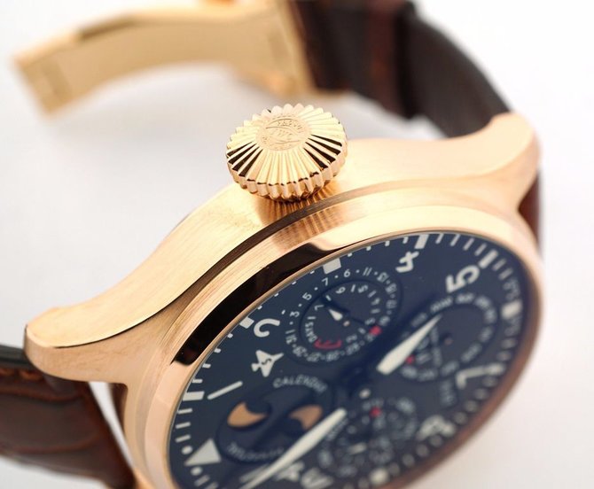 Механические швейцарские часы IWCPilots Watches Classics Perpetual Calendar Limited Edition 30 обладают широким функциональным набором. На черном циферблате сквозь сапфировое стекло указываются такие данные: часы, минуты, секунды, дата, день недели, месяц, цикл високосного года, индикатор фаз Луны, вечный календарь. Модель выпущена лимитированным тиражом - 30 экземпляров. Корпус часов представлен из розового золота, диаметром 46 мм. Его толщина - 15.7 мм. Задняя крышка изготовлена из сапфирового стекла, через которое видна работа автоматического мануфактурного калибра 51614 с запасом хода 168 часов и функцией вечного календаря. Ремешок из натуральной крокодиловой кожи оснащен раскладной золотой вставкой в виде застежки. Корпус имеет 60-метровую герметичность. Рекомендованная производителем цена на представленные часы - 47500 USD.