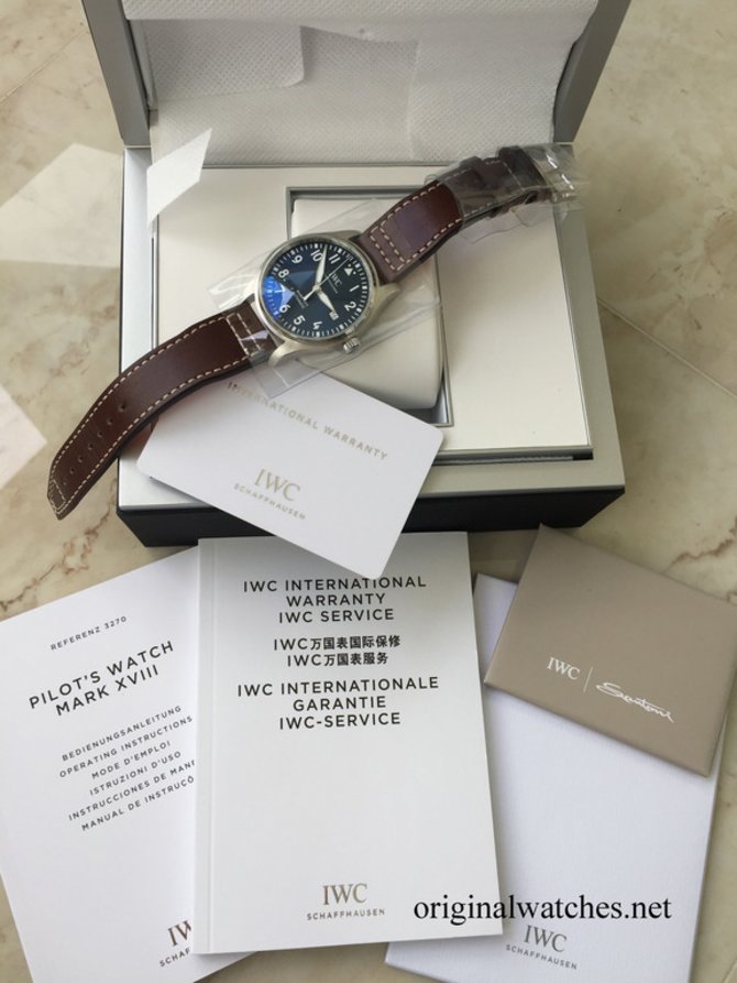 Модель Mark XVIII Edition Le Petit Prince, вошедшая в коллекцию "Pilot`s" часового бренда IWC, произведена в честь популярной аллегорической повести Антуана де Сент-Экзюпери - "Маленький принц". Известно, что писатель был пилотом и погиб, совершая очередной трюк. Корпус часов изготовлен из нержавеющей стали. На синем циферблате отображаются часы, минуты, секунды и дата. В часах установлен автоматический калибр 30110 с 42-часовым запасом хода. Водостойкость корпуса модели - 60 метров. Комплектуется модель кожаным ремешком Santoni с классической пряжкой. Циферблат защищается выпуклым сапфировым стеклом с двусторонним антибликовым покрытием. Секундная стрелка с функцией "стоп". Балансовая частота механизма 28 800 пк/час.