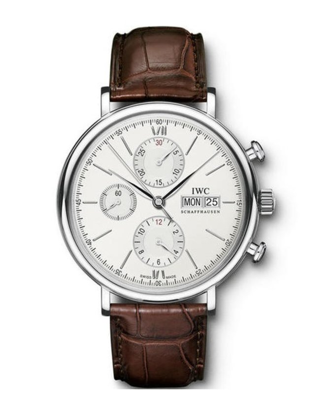 Оригинальные швейцарские часы от мануфактуры IWC вошли в коллекцию "PORTOFINO". Корпус сделан из нержавеющей стали. Диаметр корпуса - 42 мм. Функции, отображающиеся на циферблате под сапфировым стеклом: часы, минуты, секунды, день, дата, хронограф. Выполнение функций зависит от работы ротора автоподзавода швейцарского мануфактурного механизма, разработанного и собранного в стенах мануфактуры International Watch Company, располагающейся в швейцарском городе Шаффхаузен. Полированный стальной корпус круглой формы. Ремешок из кожи аллигатора. Застежка классическая, выполнена из стали. Герметичность корпуса - 30 метров (3 бар).