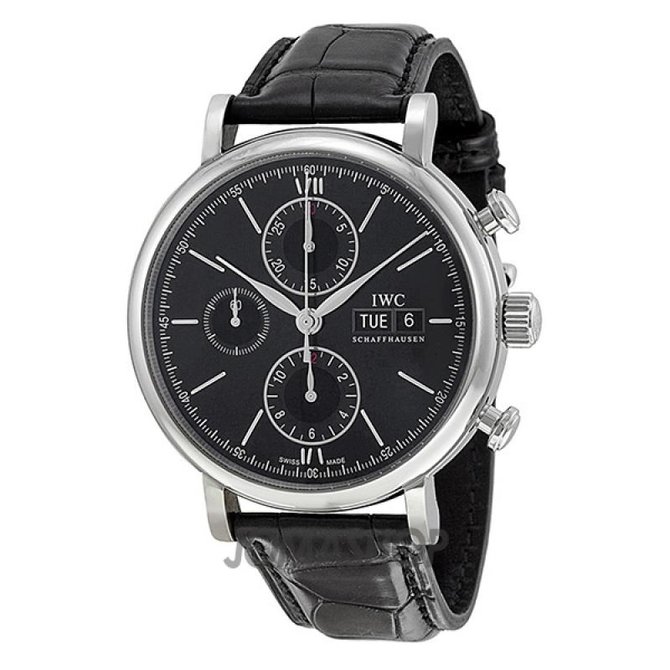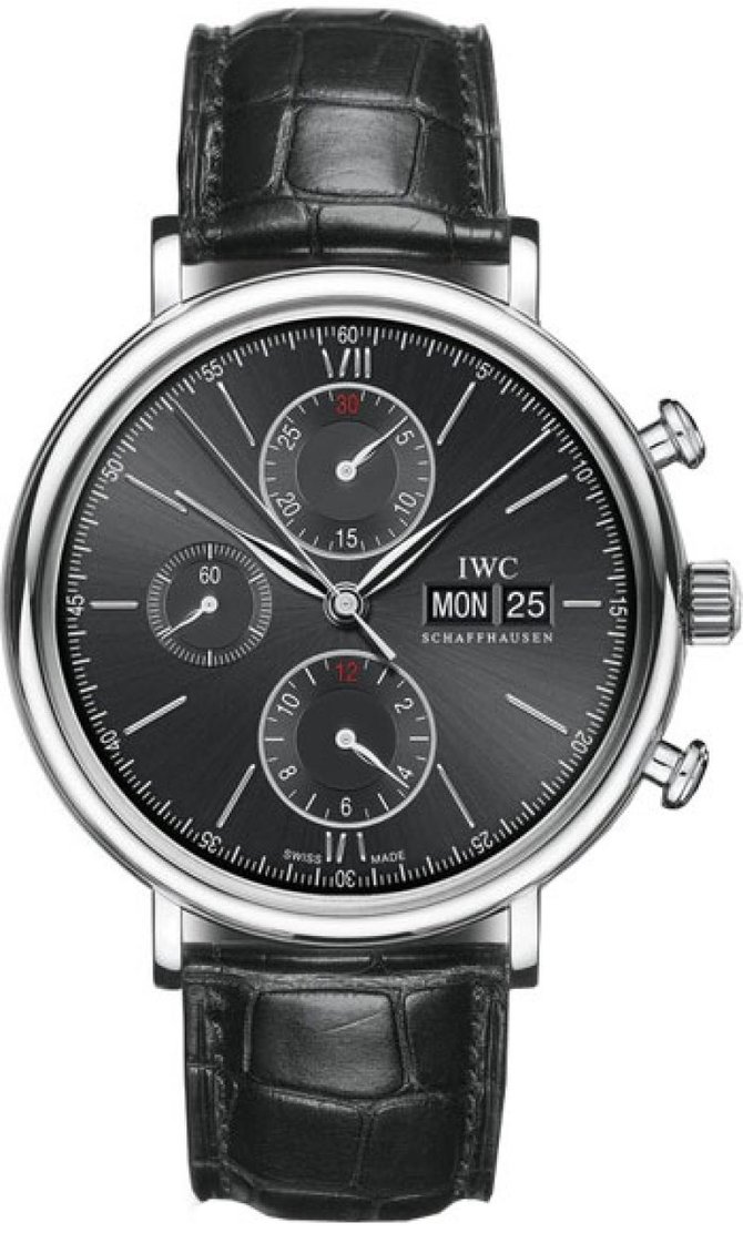 Компания IWC, известная во всем мире, представляет очередные великолепные часы IWC Chronograph IW391008 из коллекции Portofino. Очень сложно пройти мимо данной модели и не обратить на неё внимания, так как часы привлекают внешним классическим видом. Одна из особенностей данной модели, это наличие хронографа. Круглый корпус часов выполнен из нержавеющей стали. Параметры корпуса: 42 x 13.5мм. На черном циферблате великолепно смотрятся посеребренные отлитые вручную из вороненной стали стрелки. Прочное сапфировое стекло закрывает циферблат. Апертура с датой находится на позиции трех часов. Задняя крышка закрыта под давлением. Ультратонкий автоматический механизм оснащен калибром IWC 79320, и имеет запас хода на 44 часа. Ремешок выполнен из кожи аллигатора, черного цвета, оснащен раскладывающейся застежкой а также вставкой из нержавеющей стали. Водонепроницаемость модели составляет 100 футов, что равняется 30 метрам.