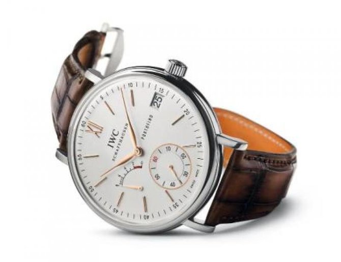 Компания IWC, известная во всем мире, представляет очередные великолепные часы IWC Hand-Wound Eight Days IW510103 из коллекции Portofino. Очень сложно пройти мимо данной модели и не обратить на неё внимания, так как часы привлекают внешним классическим видом. Одна из главных особенностей данной модели, это повышенный запас хода. Круглый корпус часов выполнен из нержавеющей стали. Параметры корпуса: 45 x 12мм. На серебристом циферблате великолепно смотрятся позолоченные отлитые вручную из вороненной стали стрелки. Прочное сапфировое стекло закрывает циферблат. Апертура с датой находится на позиции трех часов. Задняя крышка закрыта под давлением. Ультратонкий автоматический механизм оснащен калибром IWC 59210, и имеет запас хода на 8 дней. Ремешок выполнен из кожи аллигатора, коричневого цвета, оснащен раскладывающейся застежкой а также вставкой из нержавеющей стали. Водонепроницаемость модели составляет 100 футов, что равняется 30 метрам.