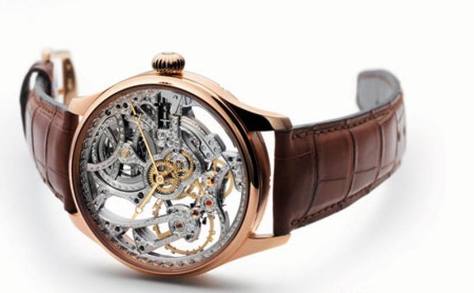 Известная во всем мире компания IWC, представляет очередные великолепные часы из коллекции Portuguese, F.A. Jones Skeleton IW544206. Очень сложно пройти мимо данной модели и не обратить на неё внимания, так как часы привлекают внешним классическим видом. Одна из главных особенностей данной модели это циферблат скелетон. Круглый корпус часов, выполнен из розового 18-каратного золота и оснащен такими параметрами 43 x 11.7 мм. Стрелки отлитые вручную из вороненной стали, позолоченные, великолепно смотрятся на серебристом циферблате. Прочное сапфировое стекло закрывает циферблат. Задняя крышка закрыта под давлением. Запас хода данной модели составляет 46 часов. Ремешок сделан из кожи аллигатора, коричневого цвета, оснащен раскладывающейся застежкой, а также вставкой из 18-каратного розового золота. Водостойкость модели составляет 100 футов, что равняется 30 метрам. Серия данной модели ограничена всего лишь в 100 экземпляров.