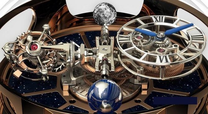 Jacob & Co - Часовой Дом, совсем недавно отметивший двухсотпятидесятилетие, предлагает интересную модель "Tourbillon Astronomia Baguette". Этот уникальный турбийон выпущен всего в 18 экземплярах. Корпус из розового золота с сапфировым стеклом имеет в диаметре, ни много ни мало, 49 миллиметров, а турбийон движется в трехмерном измерении. Идея дизайна была взята из астрологии, где используют специальные часы, чтобы определить положение земли и луны в любой точке пространства. Внутри необычного корпуса находится механизм с ручным подзаводом. Часы укомплектованы ремешком из кожи аллигатора с застежкой из розового золота. Эти ослепительные часы из новой коллекции уже успели появиться на нескольких светских раутах, ведь Jacob & Co – любимый бренд голливудской богемы. Герметичность корпуса составляет 30 метров. Спешите сделать Вашу жизнь комфортнее и ярче!