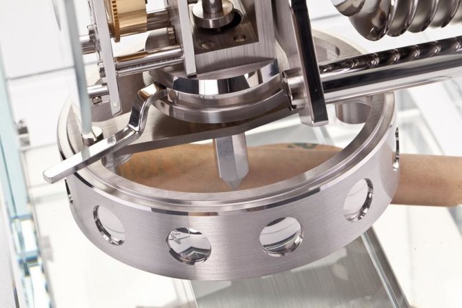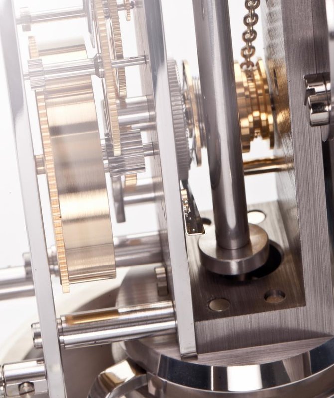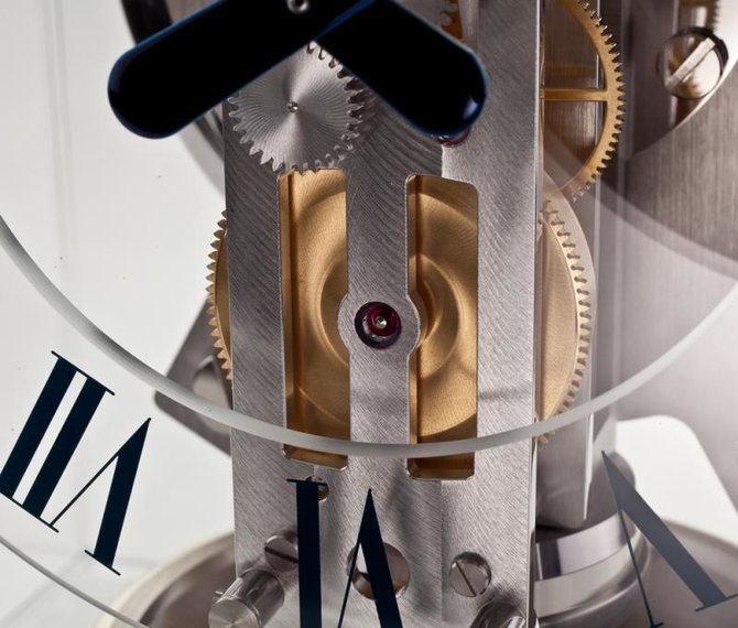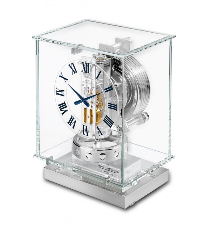 Часы Jaeger-LeCoultre являются сочетанием лучших традиций часовой индустрии и великолепного дизайна. Швейцарские часы Jaeger-LeCoultre выполнены из высококачественных материалов и собраны на базе мануфактурных сложных механизмов с самыми разными функциями. Инженер из Невшателя Жан-Леон Реттер в 1928 году создал часы, которые брали энергию… прямо из воздуха. Вечный двигатель? Да, так называемый вечный двигатель второго рода: он не полностью автономен, поскольку зависит от окружающей среды. Принцип работы часов состоит в следующем: объем газа, помещенного в герметичную камеру, увеличивается и уменьшается в зависимости от изменения температуры воздуха. Стенки капсулы, имеющие форму гармошки, перемещаются и заводят ходовую пружину часов. Референсный номер этой модели настольных часов - 5135201. Часы имеют механический калибр №560. Корпус часов из стекла - 200 мм x 155 мм x 225 мм. Циферблат у этих часов прозрачный.