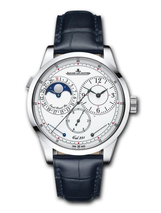 Новая разработка от швейцарской часовой компании Jaeger-LeCoultre, истинный шедевр микромеханики, интерпретация революционной концепции "Dual-Wing" - швейцарские часы "Duomètre Quantième Lunaire" на двух независимых источниках питания, первый из которых отвечает за измерение времени, а второй за функциональность циферблатов, на которых указываются часы, минуты, секунды, дата, двойная индикация запаса хода, фазы Луны и прыгающие секунды. Корпус часовой модели сделан из белого золота. В него помещен мануфактурный механический калибр 381 от Jaeger-LeCoultre, который состоит из 374 деталей, из них 40 - это драгоценные камни. Частота баланса механизма - 21 600 пк/час; запас хода - 50 часов. Корпус, диаметром 40.5 мм и толщиной 13.4 мм, водонепроницаем до 50 метров. Комплектуются часы "Duomètre Quantième Lunaire" ремешком из натуральной кожи крокодила с раскладывающейся застежкой.