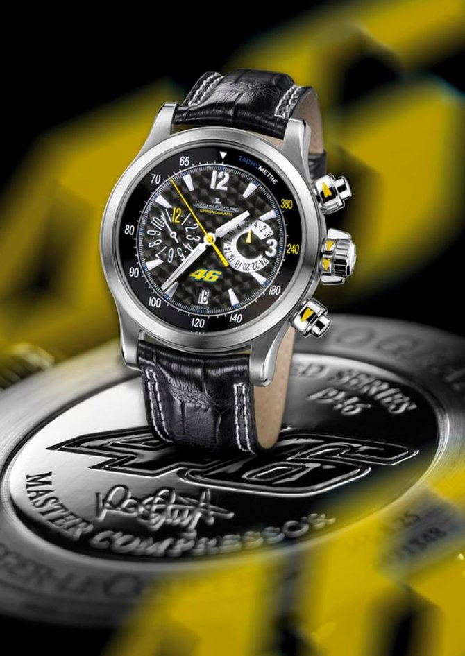 В 2006 году компания JAEGER LE COULTRE выпустила лимитированную серию Master Compressor Extreme World Chronograph 46 - часы специально разработанные для Валентино Росси (Valentino Rossi). 29-летний Валентино Росси итальянский мотогонщик из команды Fiat Yamaha Team, восьмикратный чемпион мира, в том числе и в 2008 году.
