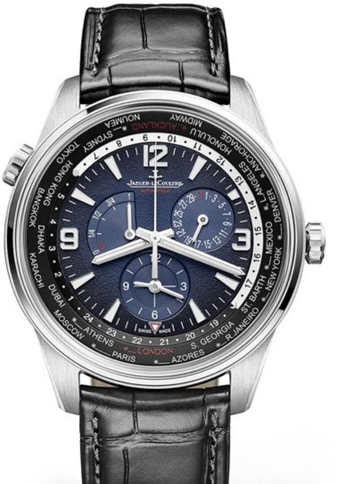 Часовой бренд Jaeger-LeCoultre представил мужские часы с автоматическим подзаводом и запасом хода на 42 часа, укомплектованные черным ремешком из кожи аллигатора с раскладной застежкой, выполненной из стали. Корпус из нержавеющей стали, диаметром 42 мм, защищен сапфировым стеклом с двух сторон. На циферблате показываются часы, минуты, секунды, дата, запас хода, время 24-х городов. Водонепроницаемость корпуса на уровне 100 метров. Часы выпущены ограниченным количеством – 250 экземпляров. Стрелки и часовые метки покрыты люминесцентным составом для индикации времени в темноте.