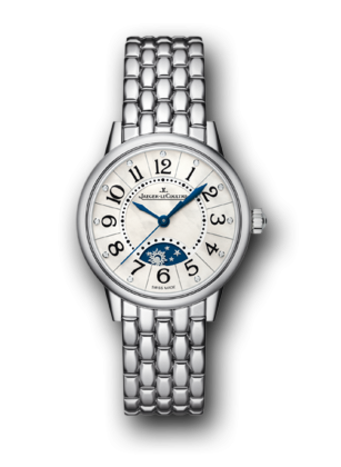 Изящный корпус из нержавеющей стали обладает удобным для женского запястья диаметром - 29 мм. Модель Rendez-Vous Night & Day разработана в классическом женском стиле. Она станет верным спутником женщин, не безразличных к красоте и часовым традициям, в любое время суток. Механизм модели (Jaeger-LeCoultre Calibre 967A) оснащен автоподзаводом, 42-х часовым запасом хода, балансовой частотой 28 800 колебаний/час. Он изготовлен из 203 элементов, стоит на 28 драгоценных камнях. Представленный результат часового мастерства, часы Jaeger-LeCoultre Rendez-Vous Night & Day, ювелирно украшен белыми бриллиантами, тем самым подчеркивая женственность модели и ее утонченность. Возле 6-ти часовой отметки перламутрового циферблата расположен индикатор "день/ночь". Укомплектованы швейцарские часы стальным браслетом с раскладной застежкой. Водонепроницаемость данной модели - 30 метров.