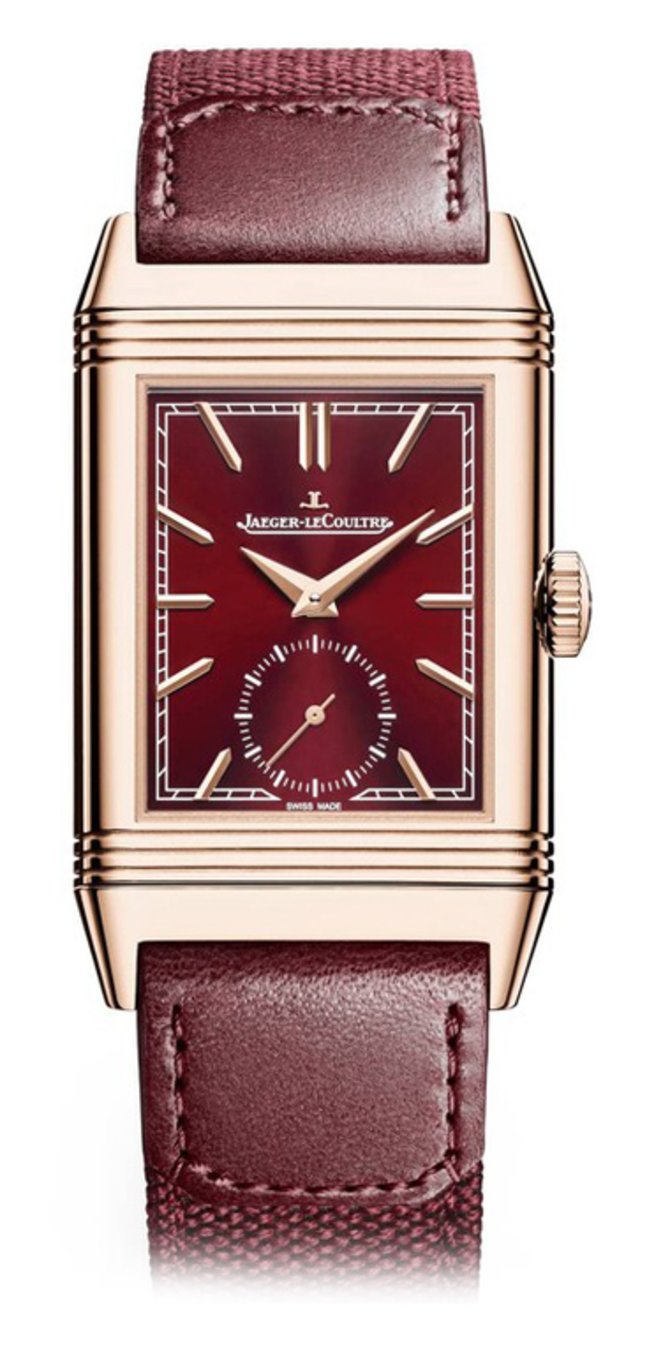 Классическая модель женских швейцарских часов от Jaeger-LeCoultre - Reverso Classic Large Small Second Q713256J выпущена в корпусе прямоугольной формы из розового золота. Его размер: 45.6 х 27.4 х 7.56 мм. Установленный механизм 822 с ручным подзаводом имеет запас хода на 42 часа. Циферблат, где показываются данные текущего времени, защищен стеклом из сапфирового кристалла с противобликовым покрытием. Часовые метки и стрелки сделаны из золота. Ремень из кожи дополняет застежка из розового золота. Водонепроницаемость корпуса - 30 метров. Часы выпущены в 2023 году.