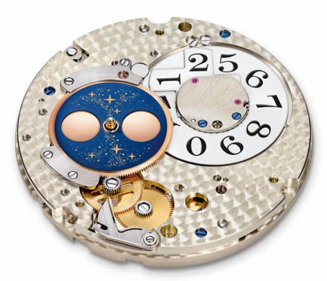 Модель оснащена мануфактурным немецким механизмом с ручным заводом A. Lange & Söhne L095.3, собранным вручную, отрегулированным в пяти положениях, на 45 камнях, с балансовой частотой 21600 полуколебаний в час (3 гц), 72-часовым запасом хода, функциями индикации часов, минут (посредством соответствующих стрелок на децентрализованном циферблате, расположенном на 9 часах), секунд (на малом боковом циферблате, расположенном на 5 часах), даты (посредством соответствующих цифровых указателей в двух квадратных апертурах, расположенных на 13 часах), запаса хода (на аналоговом указателе с секторной шкалой, расположенном на 3 часах), а также фаз Луны (посредством соответствующего указателя, расположенная в центре циферблата, расположенного на 9 часах).