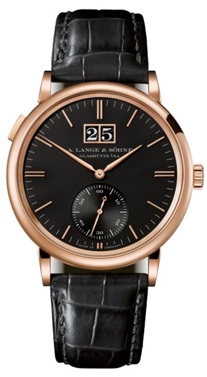 Модель A. Lange & Soehne, что вошла в коллекцию SAXONIA, в этом году была презентована на выставке высокого часового искусства SIHH 2018, что проводится ежегодно в городе Женева, Швейцария. Строгий циферблат черного цвета дополнен стрелками и метками из золота, которое соответствует корпусу. Данная модель имеет две версии - из розового золота и белого золота. Механизм механического типа выполнен мануфактурой A. Lange & Soehne. В данной версии швейцарских часов индикатор даты отличается новым дизайном: два классически белых диска с черными цифрами теперь черные и имеют белые печатные цифры. Сапфировый кристалл, из которого сделан корпус, с нанесением люминесцентного состава. В комплекте к часам идет ремень из крокодиловой кожи с классической пряжкой.