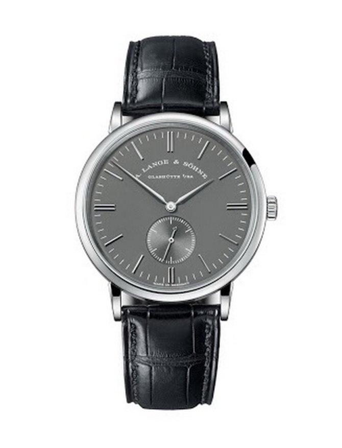 Бутиковая серия швейцарских наручных часов A. Lange and Sohne пополнила коллекцию бренда "Saxonia". 37-миллиметровый круглый корпус произведен из 18-каратного белого золота. На сером циферблате, изготовленном в минималистическом стиле, отображаются основные функции наручных часов - часы, минуты, секунды. Индикация секунд осуществляется малой секундной стрелкой на отдельном субциферблате, размещенном около 6-часовой отметки. Часовые стрелки и индексы выполнены из натурального золота. Ремешок из кожи аллигатора с классической золотой пряжкой - в комплекте. За работой механизма L941.1 можно наблюдать сквозь сапфировую заднюю крышку. Защитное лицевое стекло тоже сапфировое. Модель выпускается в двух вариантах корпуса - из розового золота и белого золота. Герметичность корпуса: 30 метров.