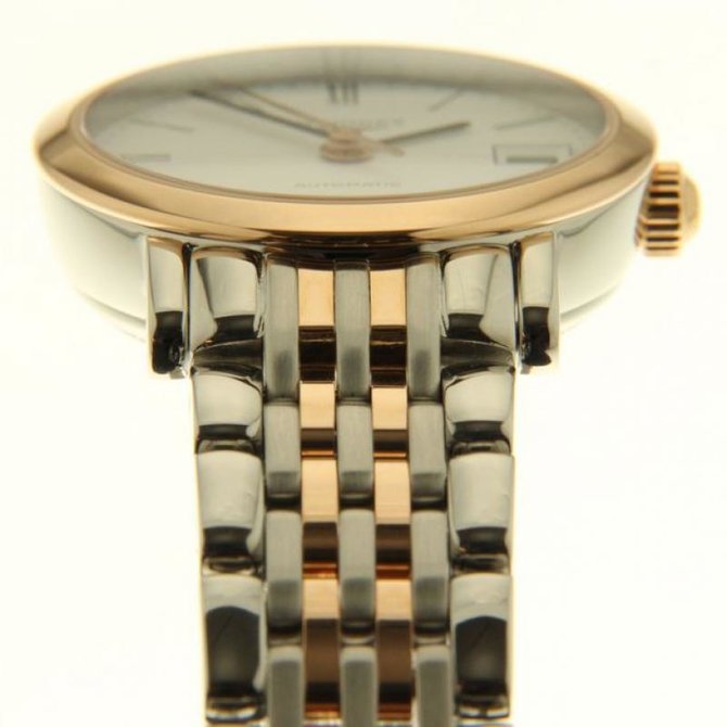 С момента своего создания бренд Longines всегда уделял особое внимание понятию элегантности. Это качество отражается не только в коллекции марки, но и знаменитом рекламном слогане «Элегантность как стиль жизни». Так что нет ничего удивительного в том, что сегодня бренд представляет новую линию часов The Longines Elegant Collection, модели которой являются идеальным воплощением классического дизайна и элегантности, характерных для коллекции Longines. Эти замечательные часы представлены в корпусе круглой формы из нержавеющей стали и розового золота 18 карат. Оснащены механическим механизмом с автоматическим подзаводом, частота 28 800 полуколебаний в час, запас хода 40 часов, калибра L595. Имеют сапфировое стекло, устойчивое к царапинам. Циферблат украшен 12-ю бриллиантами группы Top Wesselton VVS общим весом 0,026 карата. Водонепроницаемость данной модели до 3 бар(30 метров). Браслет выполнен из нержавеющей стали и розового золота 18 карат. Имеется прозрачная задняя крышка с сапфировым стеклом. Застежка тройная с системой блокировки и кнопкой.