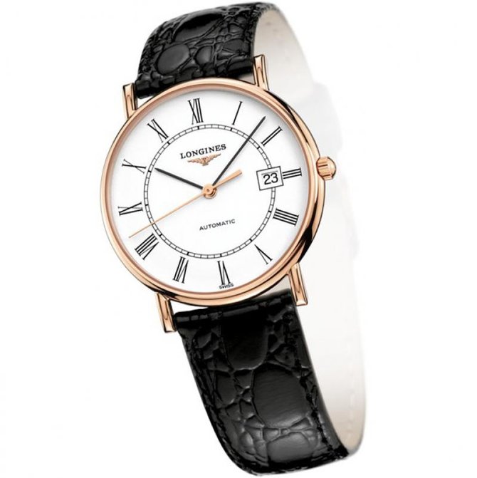 С момента своего создания бренд Longines всегда уделял особое внимание понятию элегантности. Это качество отражается не только в коллекции марки, но и знаменитом рекламном слогане «Элегантность как стиль жизни». Так что нет ничего удивительного в том, что сегодня бренд представляет новую линию часов The Longines Elegant Collection, модели которой являются идеальным воплощением классического дизайна и элегантности, характерных для коллекции Longines. Эти часы представлены в корпусе круглой формы из розового золота 18 карат. Имеют сапфировое стекло, устойчивое к царапинам. Водонепроницаемость данной модели до 3 бар(30 метров). Оснащены механическим механизмом с автоматическим подзаводом, частота 28 800 полуколебаний в час, запас хода 42 часа, калибра L619. Браслет выполнен из кожи аллигатора. Имеется прозрачная задняя крышка с сапфировым стеклом. Застежка пряжка.