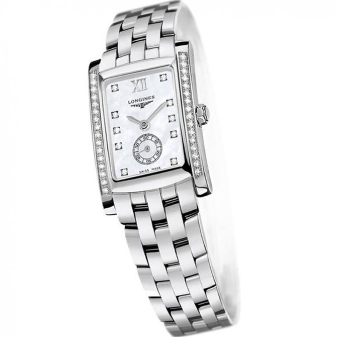 С момента своего выхода в свет в 1997 году коллекция Longines DolceVita неизменно пользовалась огромным успехом, благодаря своей утонченной современной элегантности. Эти модели напоминают об удовольствиях итальянского стиля жизни - dolce vita. Безупречно гармоничные пропорции прямоугольного корпуса моделей этой коллекции – их уникальная характеристика. Завоевывая сердца женщин по всему миру, модели коллекции выполнены из стали или желтого золота, или в комбинации стали и розового золота, а некоторые модели украшены бриллиантами. Эти часы представлены в корпусе прямоугольной формы из нержавеющей стали, который украшают 32 бриллианта группы Top Wesselton VVS общим весом 0,269 карата. Имеют сапфировое стекло, устойчивое к царапинам. Водонепроницаемость данной модели до 3 бар(30 метров). Оснащены кварцевым механизмом калибра L178. Браслет выполнен из нержавеющей стали. Застежка с системой блокировки и кнопкой.