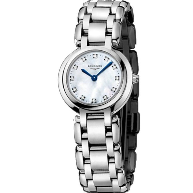 Серебристый диск Луны в томной весенней ночи; его сияние достигает своего апогея, а затем медленно тает в утренней мгле. Округлые, нежные линии новой коллекции Longines Prima Luna – дань преклонения перед женственной Луной, символом переменчивости времени. Изысканная чистота циферблата подчеркивает ее мягкий силуэт, обрамленный сиянием бриллиантов. Грациозная и магическая, эта модель заворожит женщин, влюбленных в современную, утонченную элегантность. Эти неповторимые часы представлены в корпусе круглой формы из нержавеющей стали. Имеют сапфировое стекло, устойчивое к царапинам с многослойным антибликовым покрытием изнутри. Циферблат украшен 12-ю бриллиантами группы Top Wesselton VVS общим весом 0,034 карата. Водонепроницаемость данной модели до 3 бар(30 метров). Оснащены кварцевым механизмом калибра L963. Браслет выполнен из нержавеющей стали. Застежка тройная с системой блокировки и кнопкой.