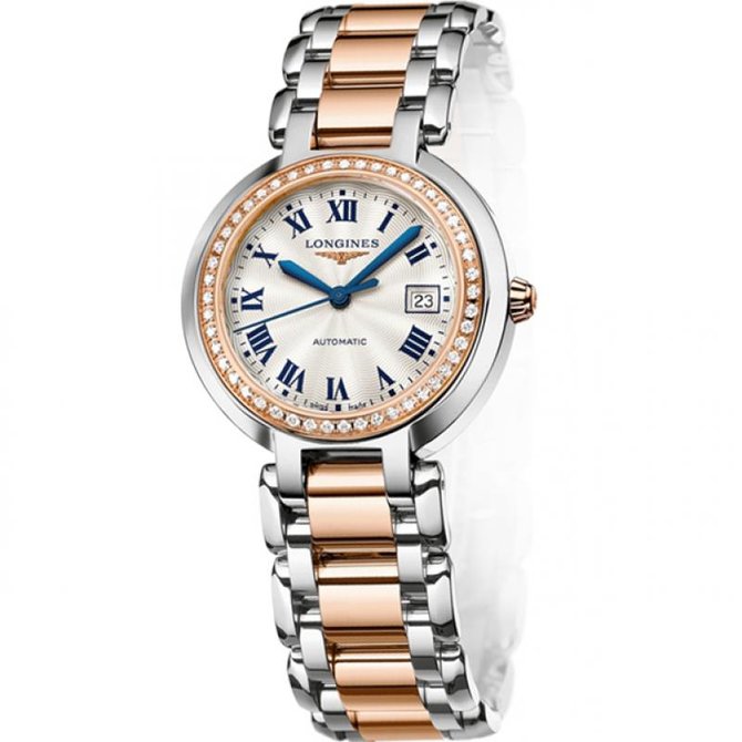 Серебристый диск Луны в томной весенней ночи; его сияние достигает своего апогея, а затем медленно тает в утренней мгле. Округлые, нежные линии новой коллекции Longines Prima Luna – дань преклонения перед женственной Луной, символом переменчивости времени. Изысканная чистота циферблата подчеркивает ее мягкий силуэт, обрамленный сиянием бриллиантов. Грациозная и магическая, эта модель заворожит женщин, влюбленных в современную, утонченную элегантность. Эти неповторимые часы представлены в корпусе круглой формы из нержавеющей стали, который украшают 48 бриллиантов группы Top Wesselton VVS общим весом 0,403 карата.Имеют сапфировое стекло, устойчивое к царапинам с многослойным антибликовым покрытием изнутри. Водонепроницаемость данной модели до 3 бар(30 метров). Оснащены механическим механизмом калибра L595. Браслет выполнен из нержавеющей стали и розовое золото 18 карат.Застежка тройная с системой блокировки и кнопкой.