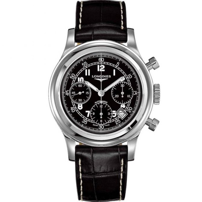 Сегодня, Longines сочетает оригинальную эстетику своих самых заметных исторических моделей с самыми современными технологиями часового дела. Изделия Heritage представляют собой дань уважения духу первопроходцев, который воодушевляет Longines с момента своего создания. Марка сопровождала множество пионеров как в воздухе, так на земле и под водой. Хронометры Longines черпают свою суть из этого опыта. Они иллюстрируют непреходящий характер марки, а также беспрестанно обновляемую способность чтить Историю, с утонченностью и элегантностью. Среди эксклюзивных изделий этого столпа Наследия, без сомнения самыми известными являются часы Lindbergh Hour Angle Watch, новое издание часов, разработанных для американского пилота Чарльза Линдберга в 1931 году. Longines Weems Second-Setting Watch, которые отдают дань навигационной системе Филиппа ван Хорн Вимса, как и Longines Twenty-Four Hours, новое издание часов, разработанных в 1950-е годы специально для пилотов компании Swissair, также фигурируют среди эмблематических моделей Heritage.Эти часы представлены в корпусе круглой формы из нержавеющей стали. Имеют сапфировое стекло, устойчивое к царапинам с многослойным антибликовым покрытием изнутри. Водонепроницаемость данной модели до 3 бар(30 метров). Оснащены механическим механизмом с автоматическим подзаводом и хронографом, частота 28 800 полуколебаний в час, запас хода 48 часов, калибра L683. Браслет выполнен из кожи аллигатора. Застежка пряжка.