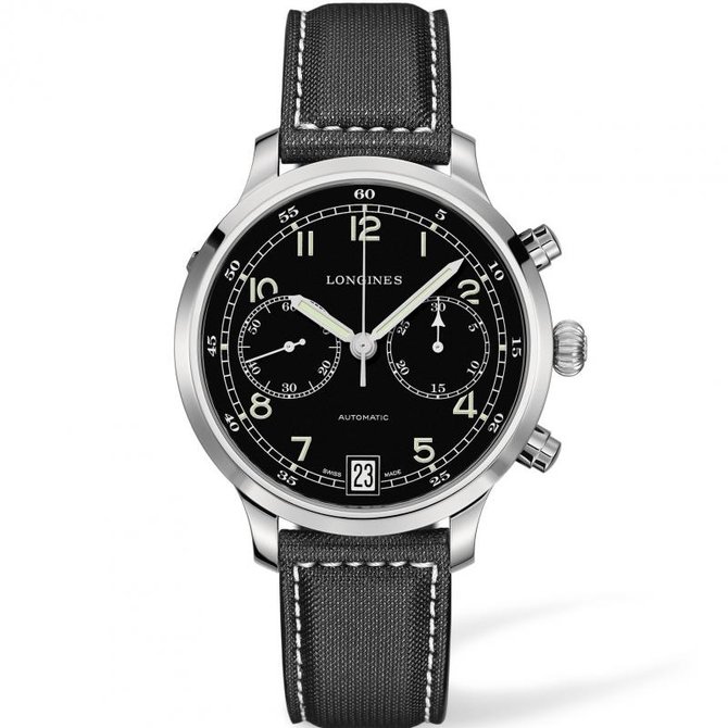 Сегодня, Longines сочетает оригинальную эстетику своих самых заметных исторических моделей с самыми современными технологиями часового дела. Изделия Heritage представляют собой дань уважения духу первопроходцев, который воодушевляет Longines с момента своего создания. Марка сопровождала множество пионеров как в воздухе, так на земле и под водой. Хронометры Longines черпают свою суть из этого опыта. Они иллюстрируют непреходящий характер марки, а также беспрестанно обновляемую способность чтить Историю, с утонченностью и элегантностью. Среди эксклюзивных изделий этого столпа Наследия, без сомнения самыми известными являются часы Lindbergh Hour Angle Watch, новое издание часов, разработанных для американского пилота Чарльза Линдберга в 1931 году. Longines Weems Second-Setting Watch, которые отдают дань навигационной системе Филиппа ван Хорн Вимса, как и Longines Twenty-Four Hours, новое издание часов, разработанных в 1950-е годы специально для пилотов компании Swissair, также фигурируют среди эмблематических моделей Heritage. Эти часы представлены в корпусе круглой формы из нержавеющей стали. Имеют сапфировое стекло, устойчивое к царапинам с многослойным антибликовым покрытием изнутри. Водонепроницаемость данной модели до 3 бар(30 метров). Оснащены механическим механизмом с автоматическим подзаводом, частота 28 800 полуколебаний в час, запас хода 46 часов, калибра L705. Браслет выполнен из синтетического ремешка. Застежка пряжка.