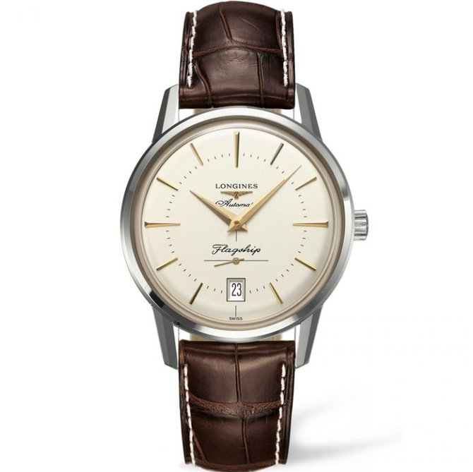 Сегодня, Longines сочетает оригинальную эстетику своих самых заметных исторических моделей с самыми современными технологиями часового дела. Изделия Heritage представляют собой дань уважения духу первопроходцев, который воодушевляет Longines с момента своего создания. Марка сопровождала множество пионеров как в воздухе, так на земле и под водой. Хронометры Longines черпают свою суть из этого опыта. Они иллюстрируют непреходящий характер марки, а также беспрестанно обновляемую способность чтить Историю, с утонченностью и элегантностью. Среди эксклюзивных изделий этого столпа Наследия, без сомнения самыми известными являются часы Lindbergh Hour Angle Watch, новое издание часов, разработанных для американского пилота Чарльза Линдберга в 1931 году. Longines Weems Second-Setting Watch, которые отдают дань навигационной системе Филиппа ван Хорн Вимса, как и Longines Twenty-Four Hours, новое издание часов, разработанных в 1950-е годы специально для пилотов компании Swissair, также фигурируют среди эмблематических моделей Heritage. Эти часы представлены в корпусе круглой формы из нержавеющей стали. Имеют сапфировое стекло, устойчивое к царапинам с многослойным антибликовым покрытием изнутри. Водонепроницаемость данной модели до 3 бар(30 метров). Оснащены механическим механизмом с автоматическим подзаводом и хронографом, частота 28 800 полуколебаний в час, запас хода 42 часа, калибра L615. Имеется задняя закручивающаяся крышка. Браслет выполнен из кожи аллигатора. Застежка пряжка.