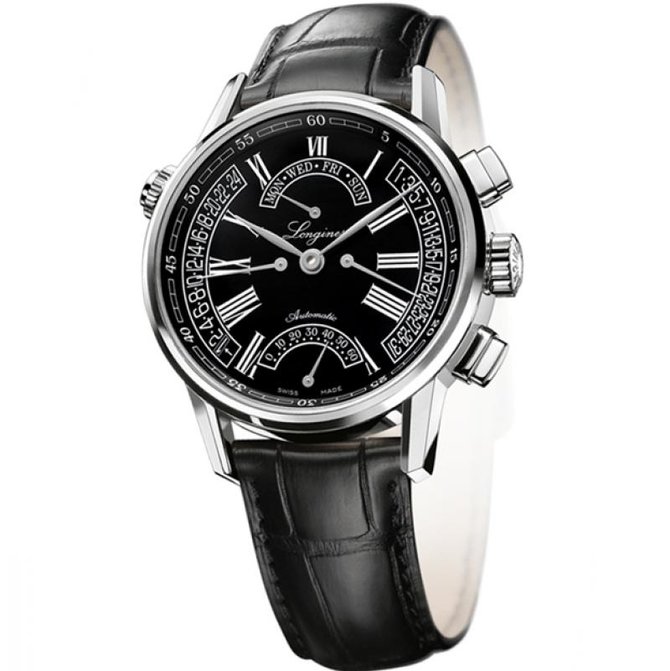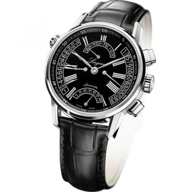 Сегодня, Longines сочетает оригинальную эстетику своих самых заметных исторических моделей с самыми современными технологиями часового дела. Изделия Heritage представляют собой дань уважения духу первопроходцев, который воодушевляет Longines с момента своего создания. Марка сопровождала множество пионеров как в воздухе, так на земле и под водой. Хронометры Longines черпают свою суть из этого опыта. Они иллюстрируют непреходящий характер марки, а также беспрестанно обновляемую способность чтить Историю, с утонченностью и элегантностью. Среди эксклюзивных изделий этого столпа Наследия, без сомнения самыми известными являются часы Lindbergh Hour Angle Watch, новое издание часов, разработанных для американского пилота Чарльза Линдберга в 1931 году. Longines Weems Second-Setting Watch, которые отдают дань навигационной системе Филиппа ван Хорн Вимса, как и Longines Twenty-Four Hours, новое издание часов, разработанных в 1950-е годы специально для пилотов компании Swissair, также фигурируют среди эмблематических моделей Heritage. Часы представлены в корпусе круглой формы из нержавеющей стали. Имеют сапфировое стекло, устойчивое к царапинам с многослойным антибликовым покрытием изнутри. Водонепроницаемость данной модели до 3 бар(30 метров). Оснащены механическим механизмом с автоматическим подзаводом и четырьмя ретроградными индикаторами, частота 28 800 полуколебаний в час, запас хода 48 часов, калибра L698. Браслет выполнен из кожи аллигатора. Застежка тройная с системой блокировки и кнопкой.