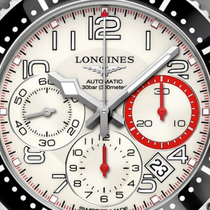 Основанный в 1832 году в Сент-Имье, известный швейцарский бренд Longines может похвастаться многолетними традициями, элегантностью и непревзойденными моделями. Эти качества в полной мере отражены в спортивной коллекции Longines. Линия HydroConquest посвящена мужчинам и женщинам, которым необходимы часы, объединяющие в себе передовые технические характеристики и элегантность. В этом году Longines расширяет линию новыми моделями ярких цветов. Эти часы представлены в корпусе круглой формы из нержавеющей стали. Имеют сапфировое стекло, устойчивое к царапинам с многослойным антибликовым покрытием изнутри. Водонепроницаемость данной модели до 30 бар(300 метров). Оснащены механическим механизмом с автоматическим подзаводоми хронографом с колонным колесом, частота 28 800 полуколебаний в час, запас хода 54 часа, калибра L688. Браслет выполнен из нержавеющей стали. Имеется закручивающаяся задняя крышка. Застежка складная с двойной блокировкой, встроенная система увеличения длины.