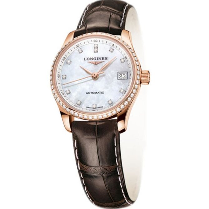 Марка Longines, благодаря многолетними традициями качества, с самого начала своего существования создала безупречную международную репутацию для своих часов, примечательных не только за присущее им высокое качество, но и за стиль и следование модным тенденциям. Это, несомненно, относится и к современным моделям часов с изысканным дизайном, составляющим коллекцию The Longines Master Collection. К основной коллекции, с успехом запущенной в 2005 году, Longines добавляет модели в розовом и желтом золоте, с черным циферблатом и в новом размере, которые уже успели произвести сенсацию на часовом рынке. Они появились ровно тогда, когда покупатели заявили о своем выборе в пользу продукции, которая не только воплощает истинные ценности, но и обладает ярко выраженной индивидуальностью. Эти часы представлены в корпусе круглой формы из розового золота 18 карат. Корпус украшен 56-бриллиантами группы Top Wesselton VVS общим весом 0,380 карата. Имеют сапфировое стекло, устойчивое к царапинам. Водонепроницаемость данной модели до 3 бар(30 метров). Оснащены механическим механизмом с автоматическим подзаводом и хронографом, частота 28 800 полуколебаний в час, запас хода 40