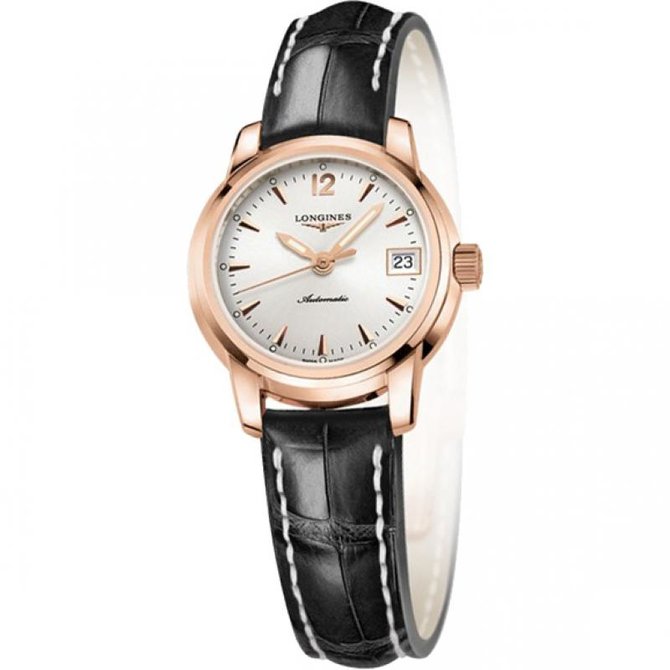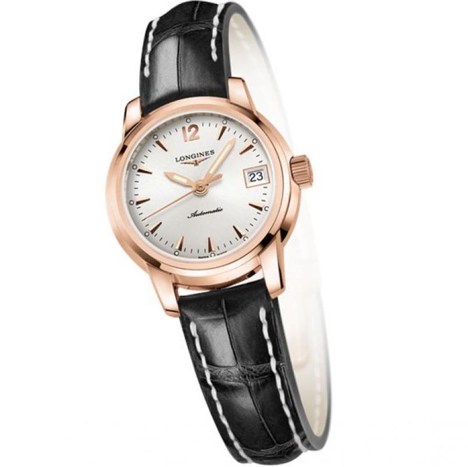 C 1832 года завод часового бренда Longines располагается в Сент-Имье, и на протяжении всей истории бренда его судьба тесно переплеталась с судьбой этого швейцарского городка. Единственная часовая марка, созданная и продолжающая выпускаться в Сент-Имье, Longines остается верной своим историческим ценностям: традиции, элегантность и спорт. Сегодня, запуская коллекцию St.Imier, бренд Longines представляет серию исключительных часов с механическими калибрами, создание которых было вдохновлено богатым наследием часовых мастеров ее родины. Эти часы представлены в корпусе круглой формы из розового золота 18 карат. Имеют сапфировое стекло, устойчивое к царапинам с многослойным антибликовым покрытием изнутри. Водонепроницаемость данной модели до 3 бар(30 метров). Оснащены механическим механизмом с автоматическим подзаводом, частота 28 800 полуколебаний в час, запас хода 40 часов, калибра L595. Браслет выполнен из кожи аллигатора. Имеется прозрачная задняя крышка с сапфировым стеклом. Застежка тройная с системой блокировки и кнопкой.