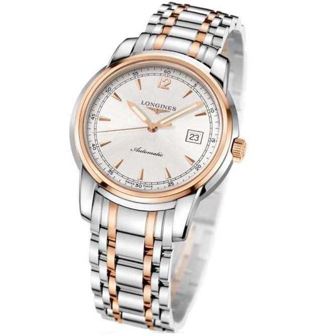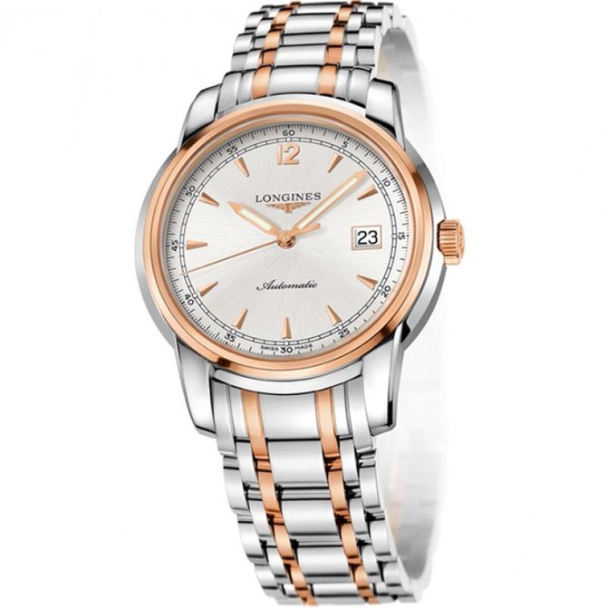 C 1832 года завод часового бренда Longines располагается в Сент-Имье, и на протяжении всей истории бренда его судьба тесно переплеталась с судьбой этого швейцарского городка. Единственная часовая марка, созданная и продолжающая выпускаться в Сент-Имье, Longines остается верной своим историческим ценностям: традиции, элегантность и спорт. Сегодня, запуская коллекцию St.Imier, бренд Longines представляет серию исключительных часов с механическими калибрами, создание которых было вдохновлено богатым наследием часовых мастеров ее родины. Эти часы представлены в корпусе круглой формы из розового золота 18 карат. Имеют сапфировое стекло, устойчивое к царапинам с многослойным антибликовым покрытием изнутри. Водонепроницаемость данной модели до 3 бар(30 метров). Оснащены механическим механизмом с автоматическим подзаводом, частота 28 800 полуколебаний в час, запас хода 42 часа, калибра L619. Браслет выполнен из нержавеющей стали и розового золота 18 карат. Имеется прозрачная задняя крышка с сапфировым стеклом. Застежка тройная с системой блокировки и кнопкой.