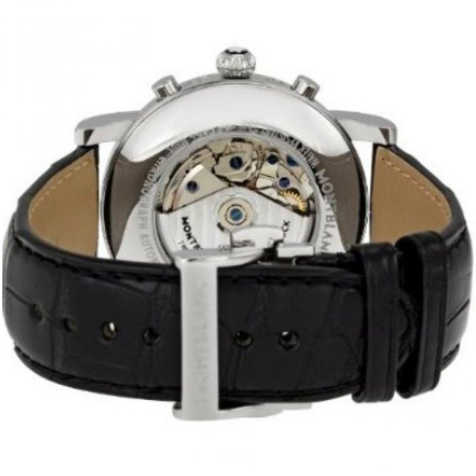 Современный альпинизм зародился в конце XVIII века, когда отважные альпинисты впервые ступили на вершину высочайшей в Европе горы Монблан. Практически одновременно более чем в 1000 километрах к северу, в расположенном в пригороде Лондона городе Гринвич было введено среднее время по Гринвичу, ставшее точкой отсчёта времени во всём мире, что так же положило начало новой эпохе. В модели Montblanc Star Chronograph GMT/UTC Automatic представлены оба выдающихся достижения. Часы представлены в круглом корпусе из нержавеющей стали диаметром 42 мм и толщиной 14,7 мм. В механизме с автоподзаводом использовано 25 камней. Частота - 28800 полуколебаний в час. Запас хода до 48 часов. Украсивший чёрный циферблат изысканный гильошированный узор в виде эмблемы Montblanc символизирует поразительное величие высочайшей горы Альпийского массива. Стрелки с родиевым напылением в форме листьев и палочек. Стрелка индикатора времени второго часового пояса перемещается вдоль 24-часовой шкалы, нанесённой на внешний край циферблата.Задняя крышка прозрачная и выполнена с использованием сапфирового стекла. Ремешок с раскладывающейся