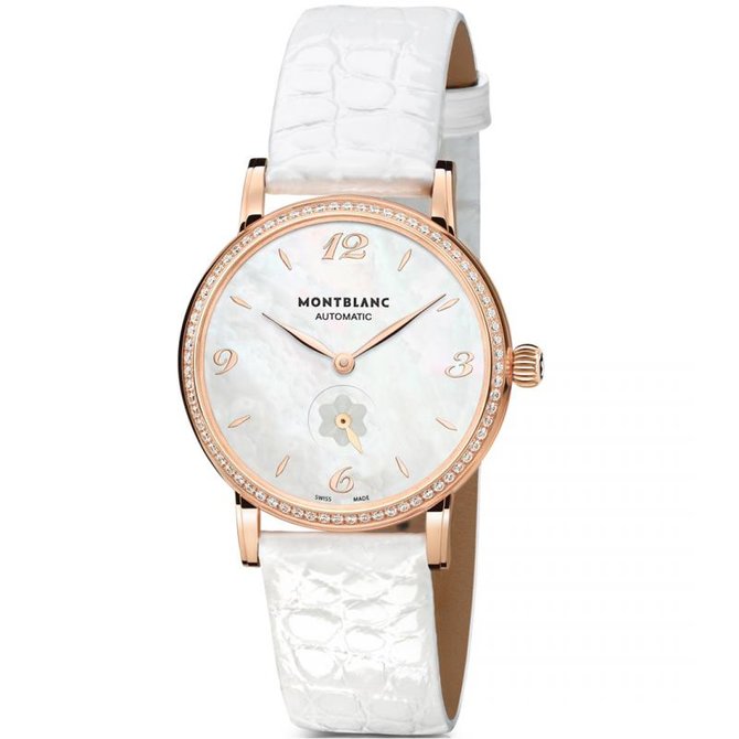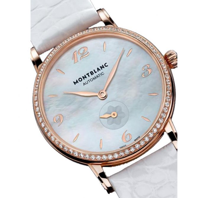 Модель отличается совершенной, лаконичной и утонченной формой. Изысканные нюансы отделки ложатся в основу благородного классического стиля, ставшего идеальным воплощением элегантной экстравагантности. В часах Star Classique Lady Automatic с необычайно тонким корпусом минималистская индикация времени отражает непревзойденный уровень швейцарского часового мастерства. Корпус круглой формы, изготовлен из нержавеющей стали. Диаметр и толщина 34 мм и 8,98 мм соответственно. В кварцевом механизме использовано 27 камней. Белый перламутровый циферблат, метки и цифры с напылением розового золота. Стрелки представлены в форме листьев с напылением розового золота. Выпуклое сапфировое стекло с двойным антибликовым покрытием. Задняя крышка из розового золота 18К. Ремешок из кожи аллигатора. Герметичность до 30 метров (3 бар).