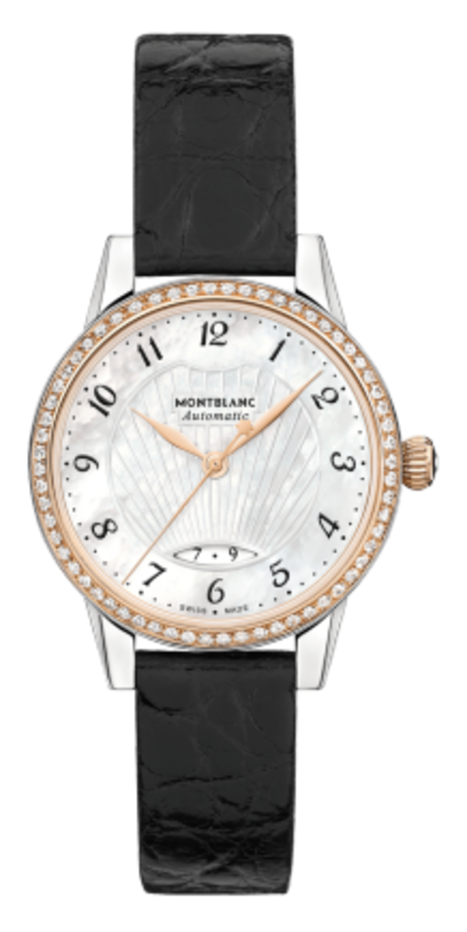 Часы для женщин были представлены швейцарской компанией Montblanc в комбинированном корпусе круглой формы, что сделан из нержавеющей стали с розовым золотом. Безель инкрустирован настоящими драгоценными камнями в виде белых бриллиантов с классической огранкой. На руке модель фиксируется мягким лакированным ремнем из кожи аллигатора черного цвета и классической пряжкой из стали в комплекте. Водонепроницаемость корпуса небольшого размера до 30 метров. механизм, который предусмотрен в этих часах, работает от автоматического подзавода.