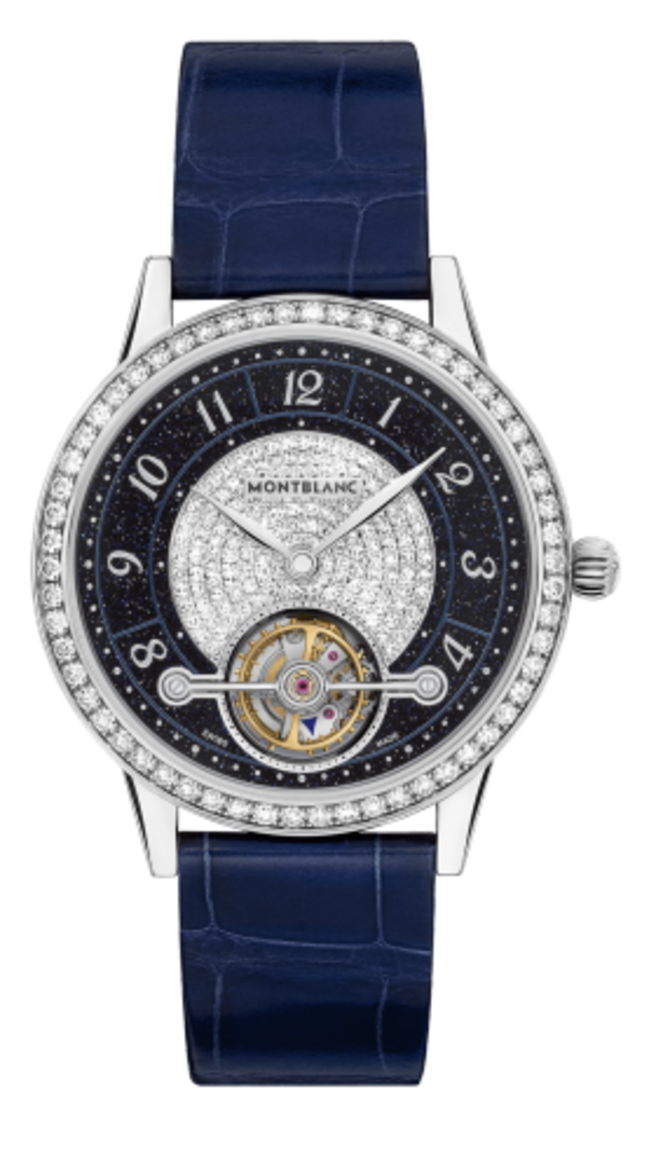 Высочайшая точность механизма сочетается с женским великолепием. Модель Montblanc Bohème ExoTourbillon Slim полна изысканных контрастов. Этот экземпляр, представленный лимитированной серией из 18 экземпляров, выполнен из белого золота и украшен белыми и синими бриллиантами. В самостоятельно разработанном калибре MB M29.24 используется запатентованный Montblanc ExoTourbillon и быстрый механизм секундомера. Поверхность циферблата выполнена из темно-синего авантюрина, напоминающего мерцающее ночное небо, а центр концентрированно инкрустирован 144 бриллиантами. Стекло из натурального сапфирового кристалла. Безель украшен 58 бриллиантами. Алмаз в форме эмблемы Montblanc украшает циферблат в районе отметки "3 часа", а другой бриллиант установлен на пряжке из белого золота.